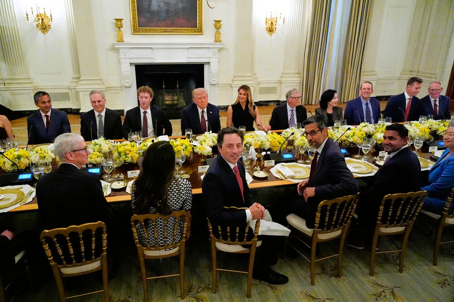 Photo: Associated Press. Tech CEOs praise President Trump at White House dinner.